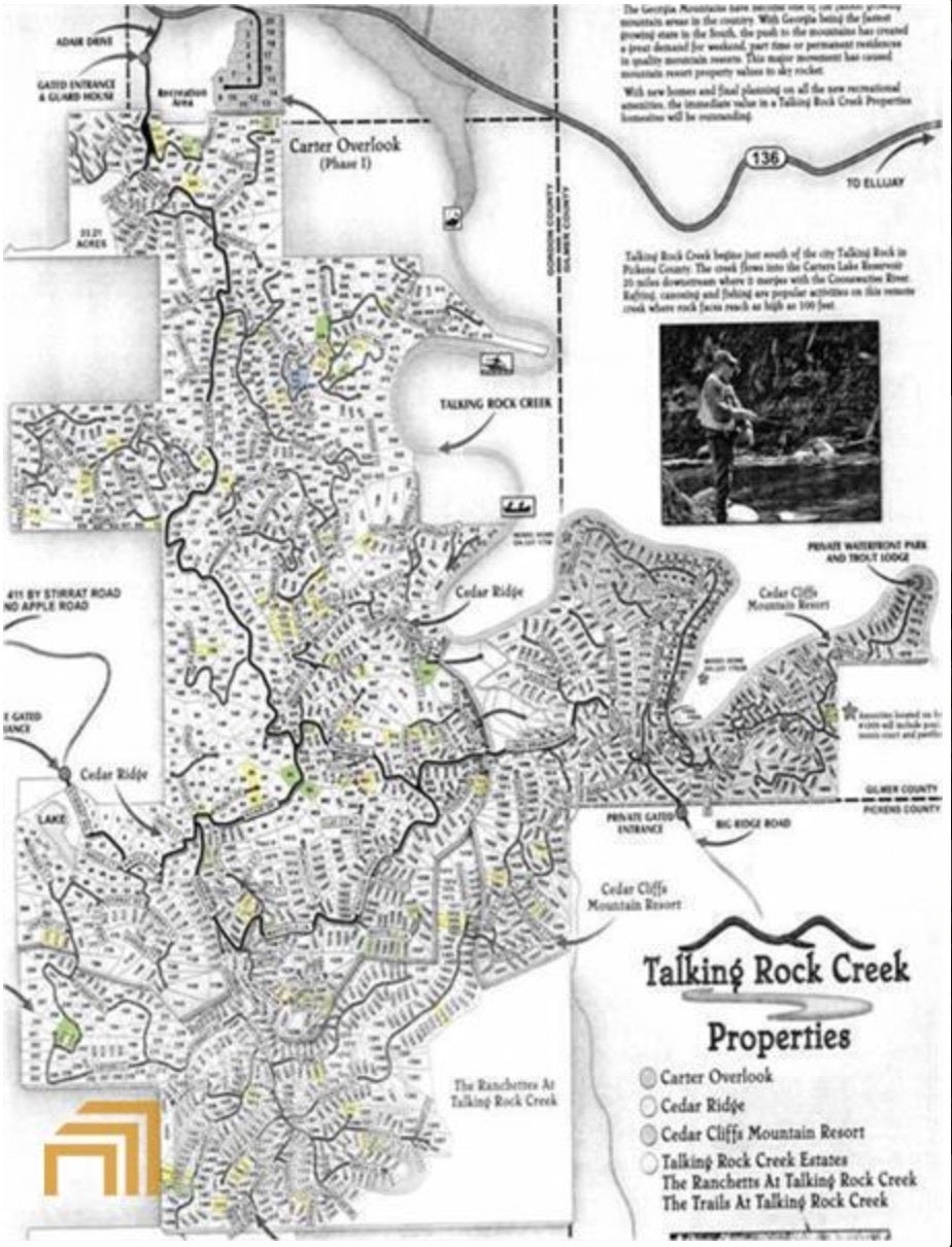 Secluded 1.01 Ac Lot in TRCR with amazing South/Southwestern views! TRCR has an 11 acre stocked fishing lake, swimming pools, tennis courts, mountain views, tumbling streams, hiking trail, and quiet forests offers the seclusion and privacy that's often missing from many overdeveloped mountain communities. A mountain retreat that's just a 30 minute drive from the shops and restaurants of Jasper and Ellijay and only an hour south of Chattanooga.